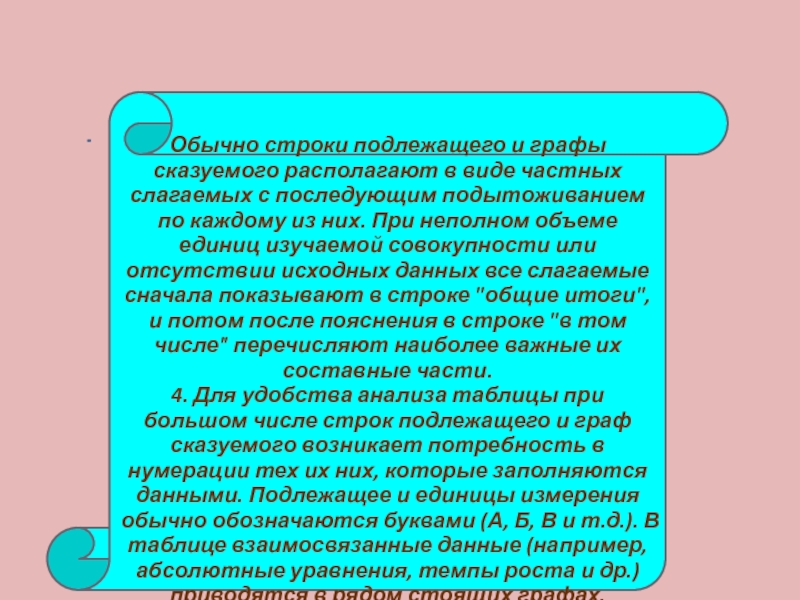 Боковые заголовки - раскрывают содержание строк подлежащего