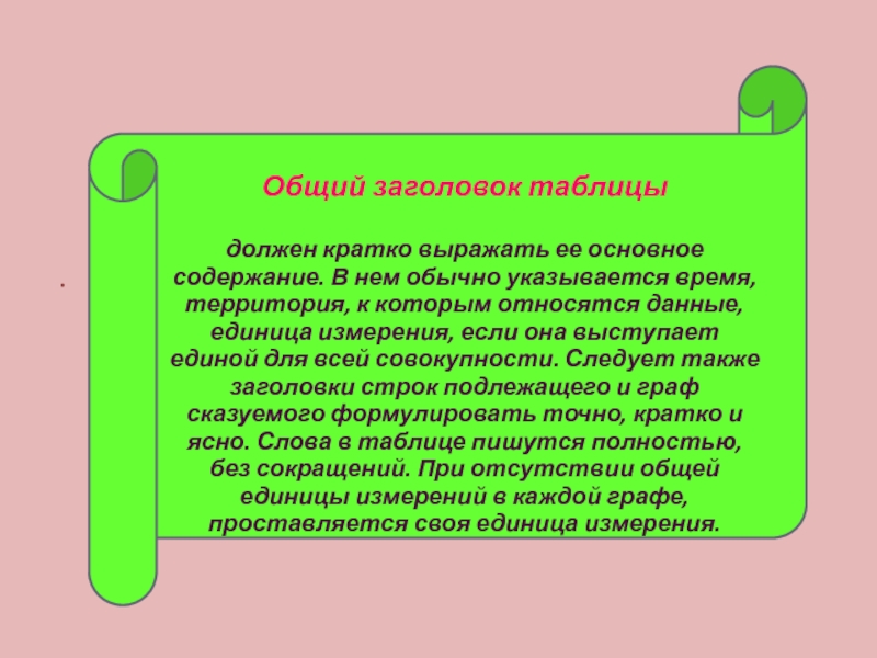 Каждая строка и графа имеют общее заглавие (название), определяющее ее содержание, назначение, место и время.
