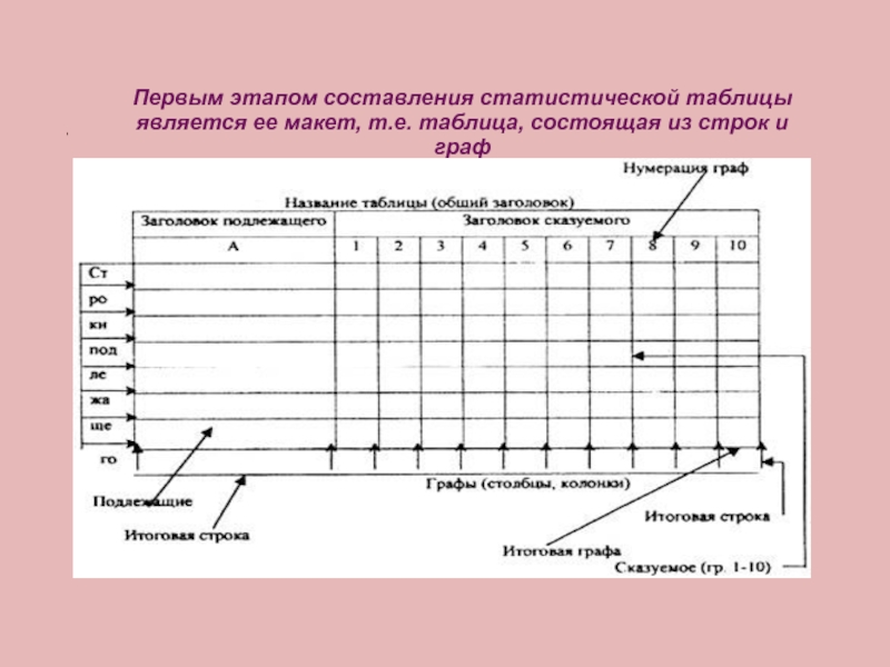 Первым этапом составления статистической таблицы является ее макет, т.е. таблица, состоящая из строк и граф