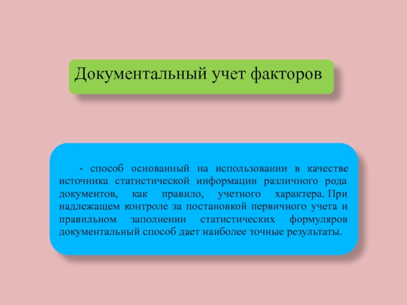 Документальный учет факторов	- способ основанный на использовании в качестве источника статистической информации различного рода документов, как правило,