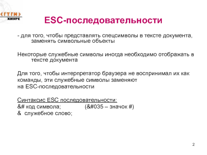 того, чтобы интерпретатор браузера не воспринимал их как команды, эти служебные символы заменяют