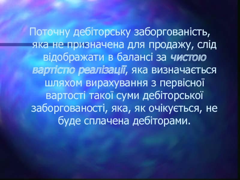 Поточну дебіторську заборгованість, яка не призначена для продажу, слід відображати в балансі за чистою вартістю реалізації, яка