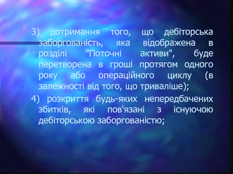 3) дотримання того, що дебіторська заборгованість, яка відображена в розділі