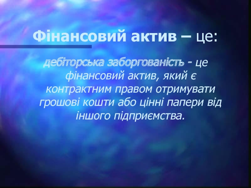 Фінансовий актив – це:дебіторська заборгованість - це фінансовий актив, який є контрактним правом отримувати грошові кошти або