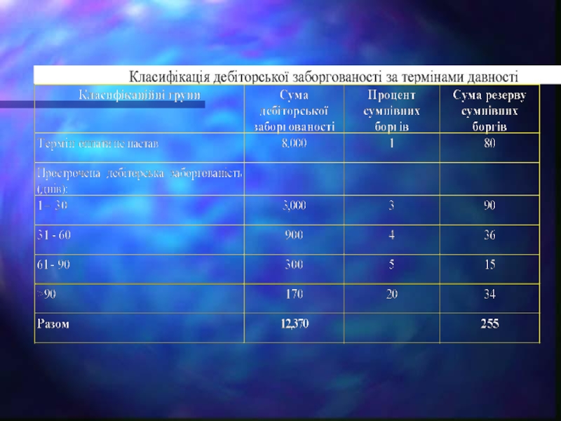 Слайд 22класифікації (періодизації) дебіторської заборгованості
