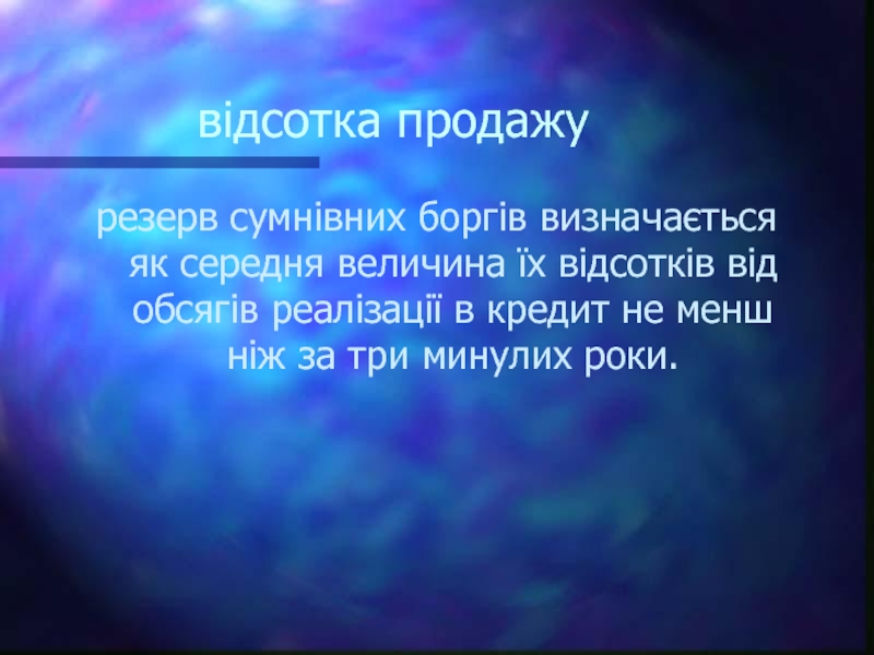 відсотка продажурезерв сумнівних боргів визначається як середня величина їх відсотків від обсягів реалізації в кредит не менш
