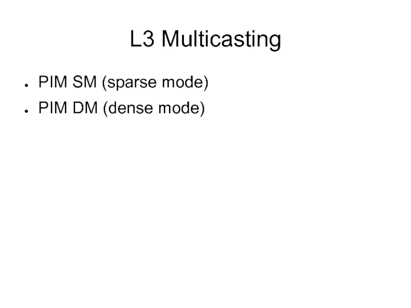 L3 MulticastingPIM SM (sparse mode)PIM DM (dense mode)