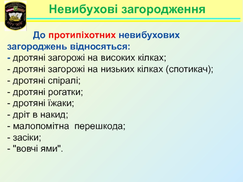 Слайд 6Інженерні загородження