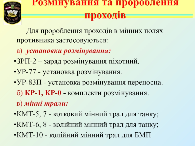 За допомогою яких засобів здійснюється розмінування та пророблення проходів?