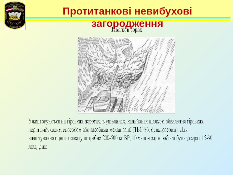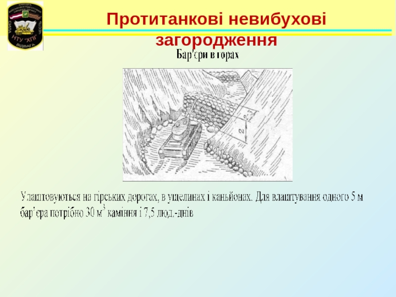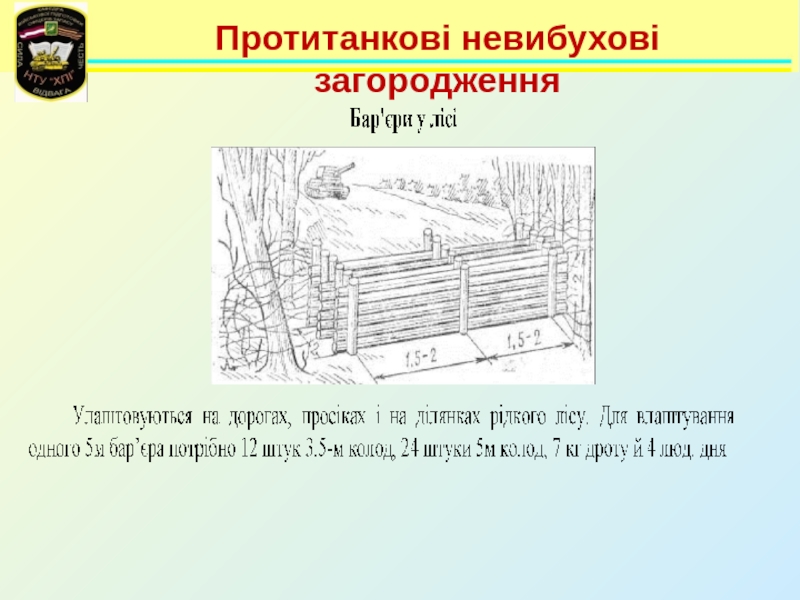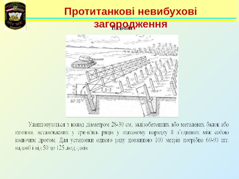 Слайд 96Протитанкові невибухові загородження