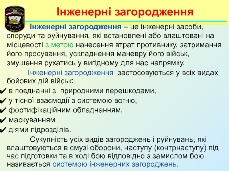 ʺІнженерні загородження, їх улаштування та подоланняʺ