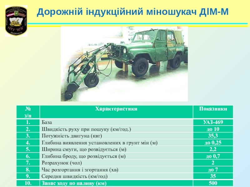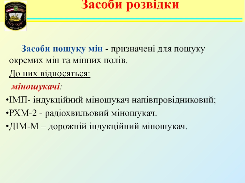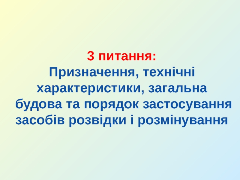 3. Призначення, технічні характеристики, загальна будова та порядок застосування засобів розвідки і розмінування.