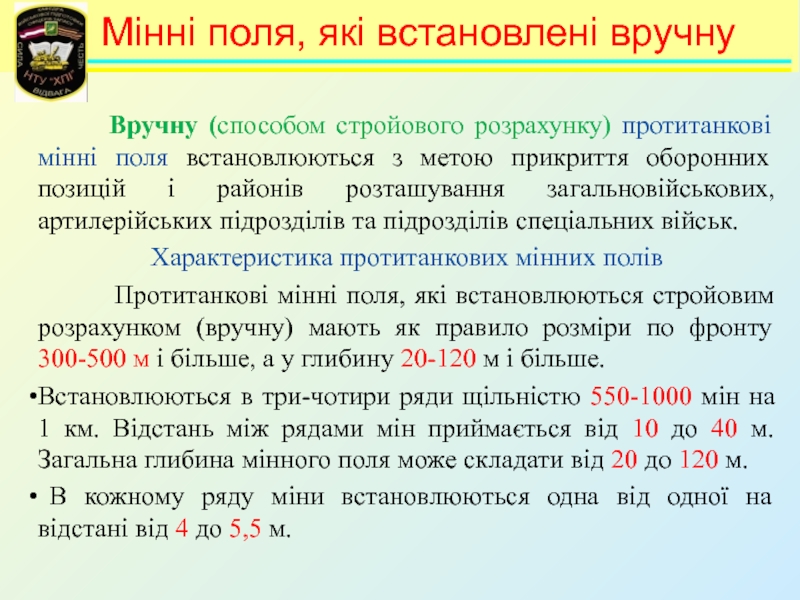 будова і порядок встановлення мін Збройних Сил України. Мінні поля