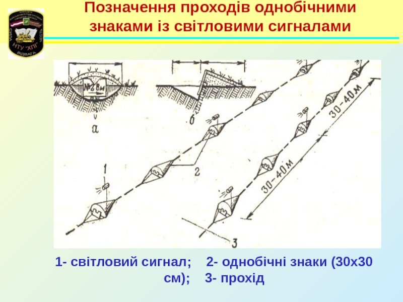 Слайд 79Позначення проходів однобічними знаками із світловими сигналами