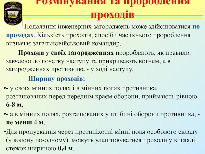 Слайд 75Долання мінного поля по колійних проходах