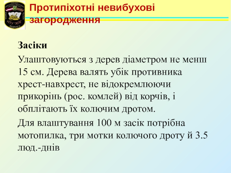 Тема 4: Інженерні загородження, їх улаштування та подолання Заняття №1: “Інженерні загородження”