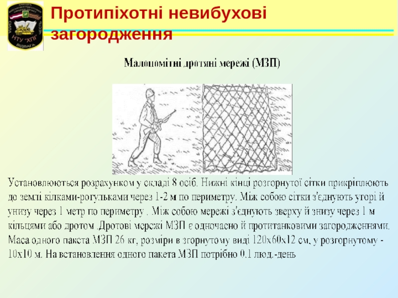 Слайд 103Протипіхотні невибухові загородження