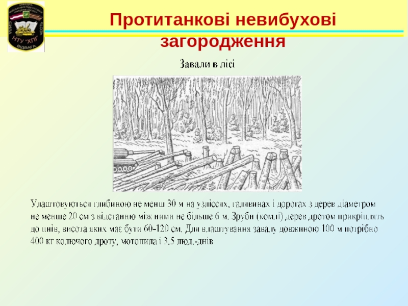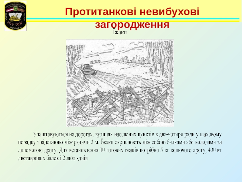 Слайд 95Протитанкові невибухові загородження