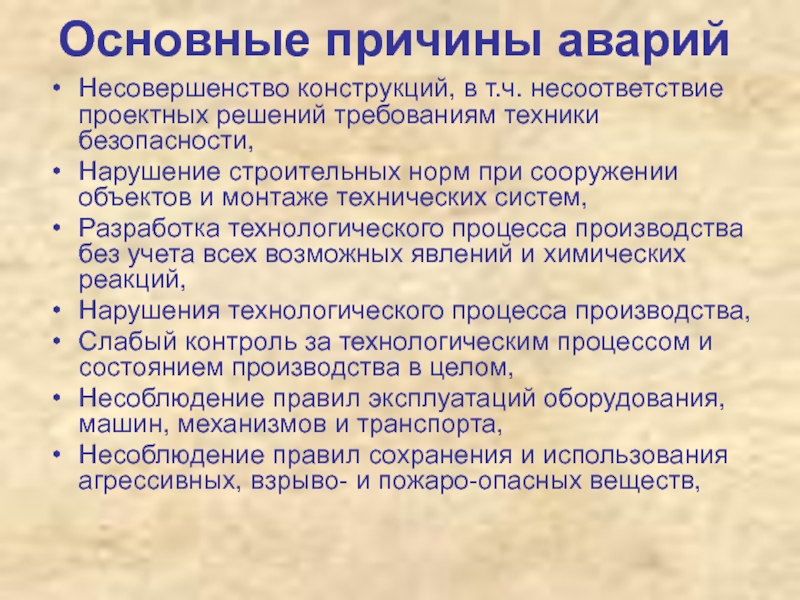 механизмов и агрегатов, которые сопровождаются значительными нарушениями производственного процесса, взрывами,
