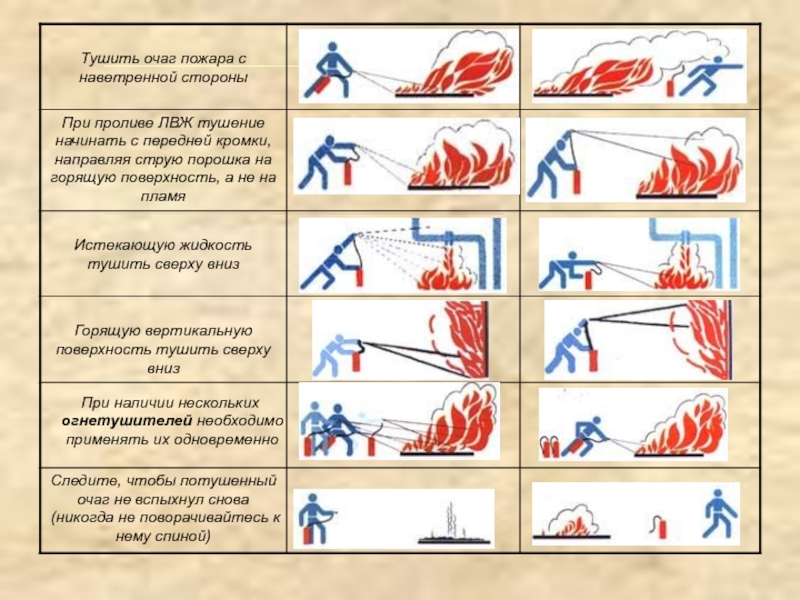 - придатність вогнегасника для гасіння пожежі певного класу та відповідність умовам його експлуатації;