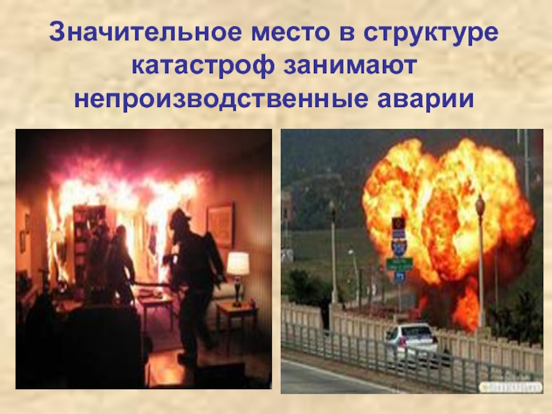 Слайд 13Значительное место в структуре катастроф занимают непроизводственные аварии
