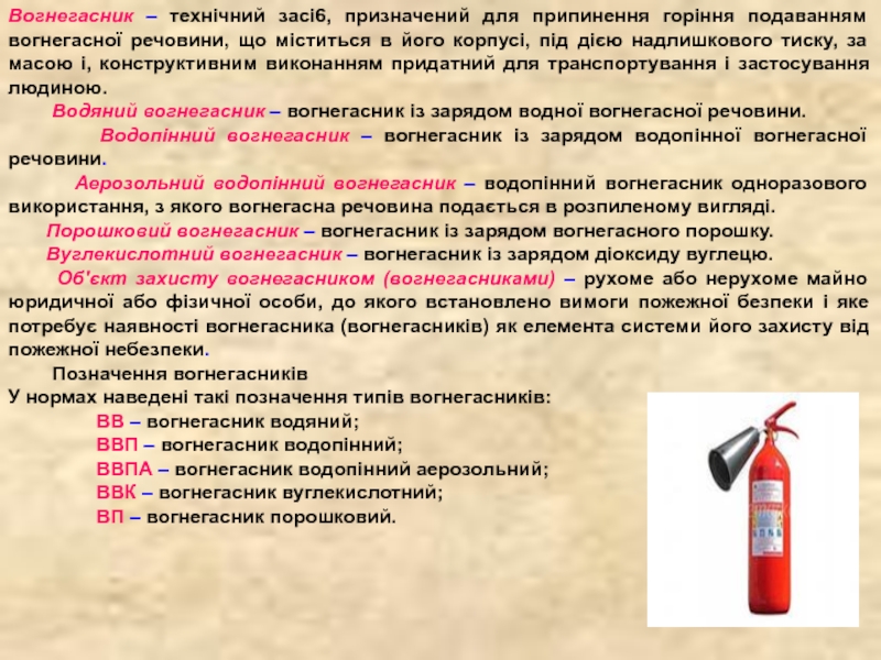 Слайд 73Цифра після позначення типу вогнегасника означає масу вогнегасної речовини у