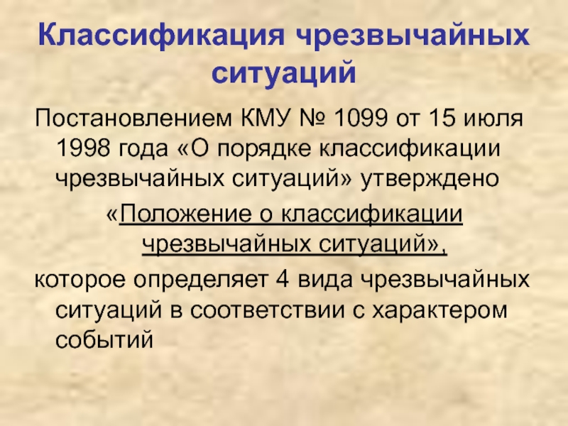 которое определяет 4 вида чрезвычайных ситуаций в соответствии с характером событий