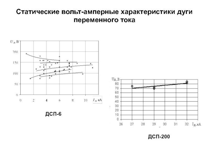 Статические вольт-амперные характеристики дуги переменного токаДСП-6ДСП-200