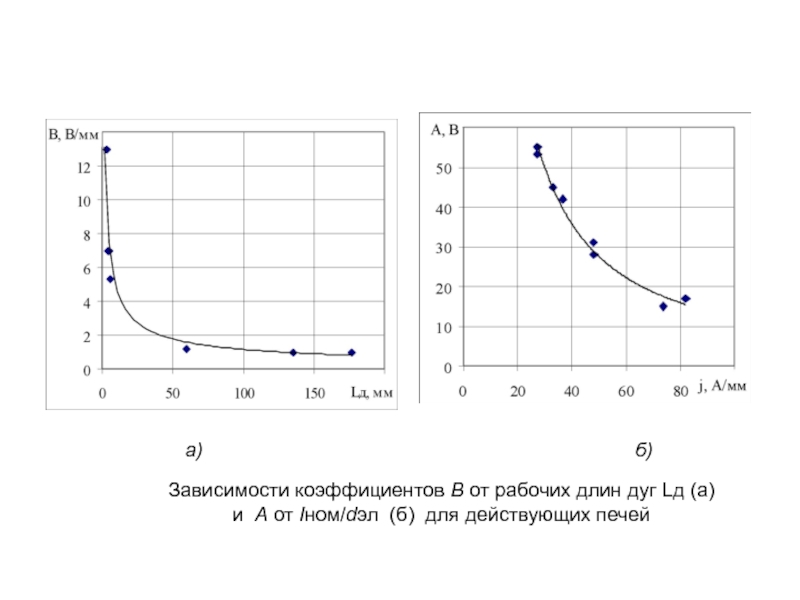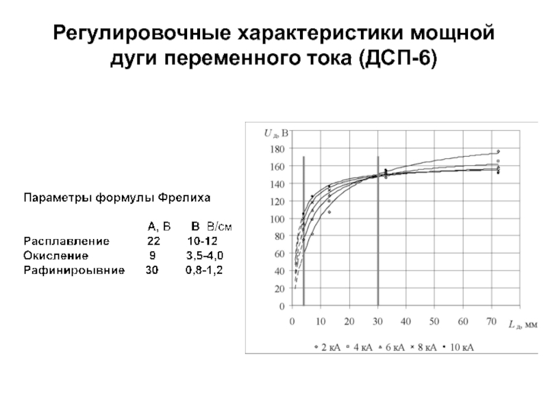 Слайд 17Регулировочные характеристики мощной дуги переменного тока (ДСП-6)