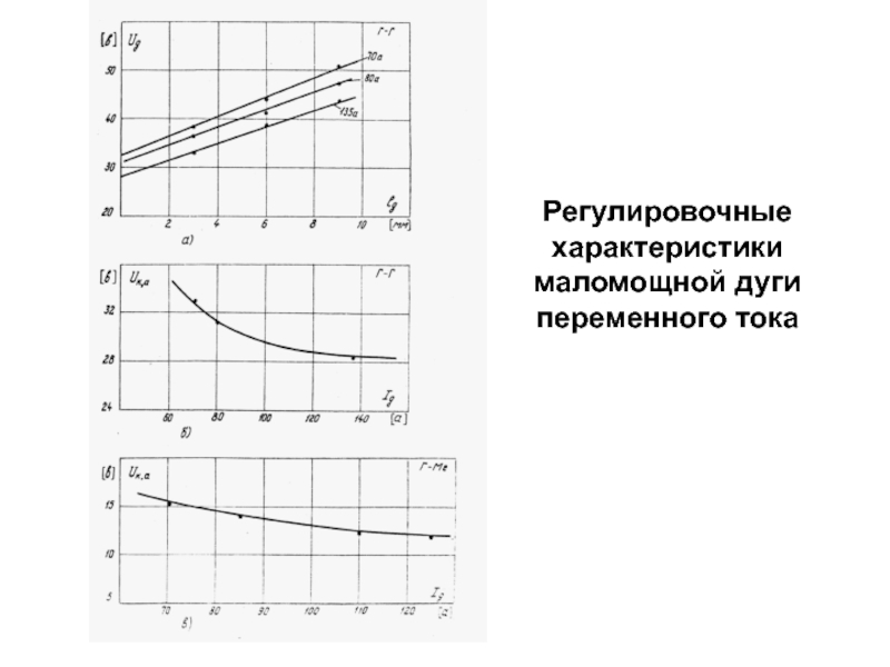 Слайд 13Регулировочные характеристики маломощной дуги переменного тока