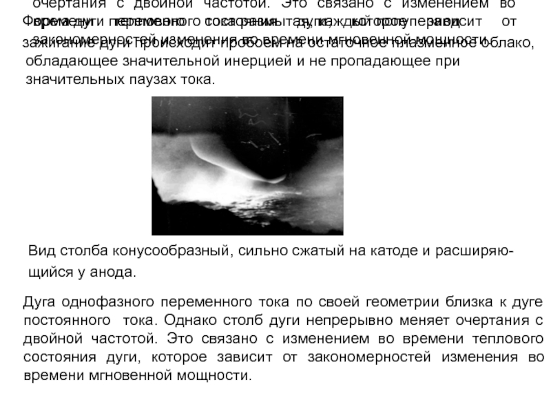 Слайд 3Дуга однофазного переменного тока по своей геометрии близка к дуге