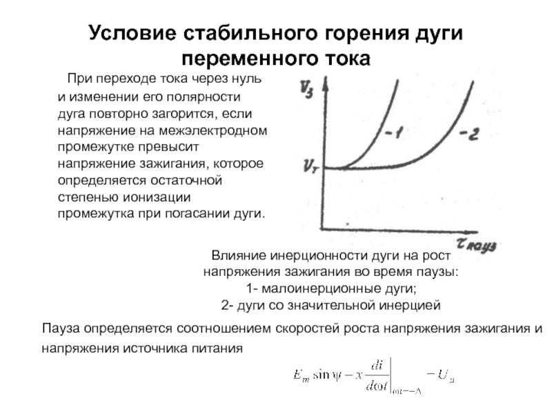Условие стабильного горения дуги переменного тока    При переходе тока через нуль и изменении его