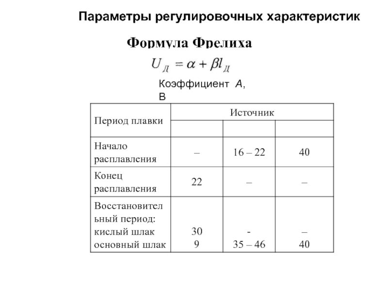 Коэффициент А,  В Формула ФрелихаПараметры регулировочных характеристик