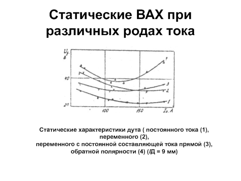 Слайд 11Статические вольт-амперные характеристики дуги переменного тока