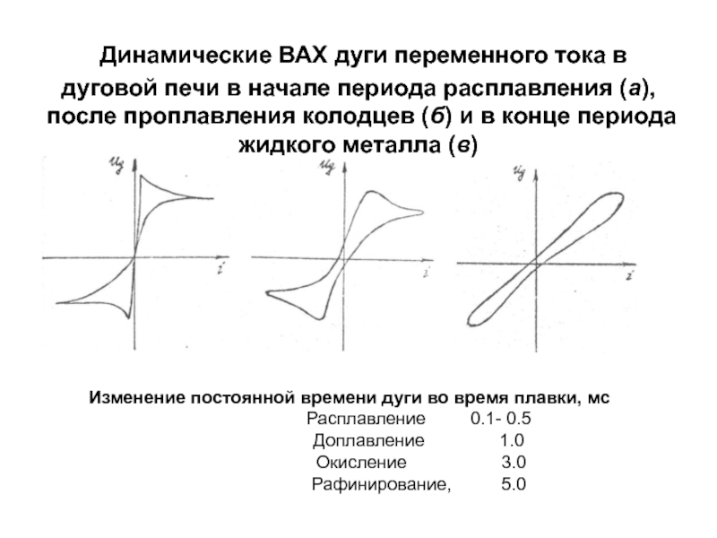 Слайд 9 Динамические ВАХ дуги переменного тока в дуговой печи в
