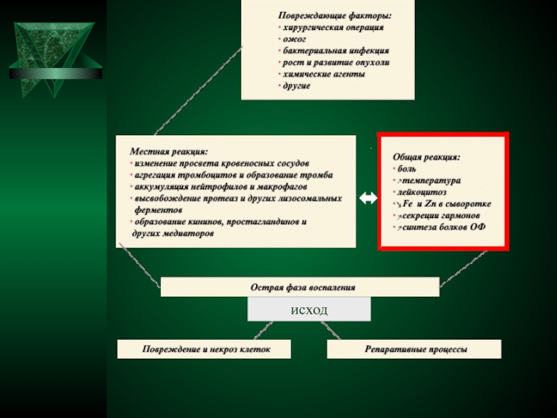 Комплекс последовательных реакций, возникших в ответ на инфекционные возбудители, физические и химические повреждающие воздействия или опухолевый процесс, называют ответом острой фазы (ООФ).