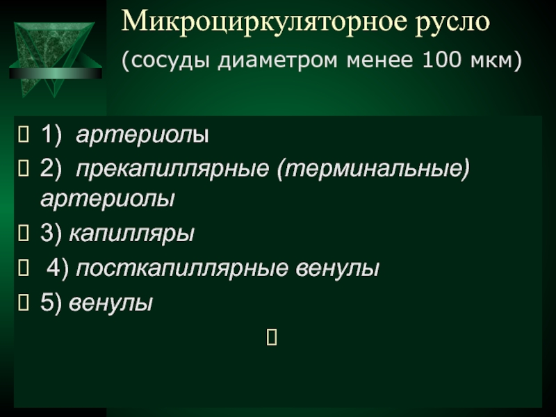 Слайд 5Микроциркуляторное русло (сосуды диаметром менее 100 мкм)