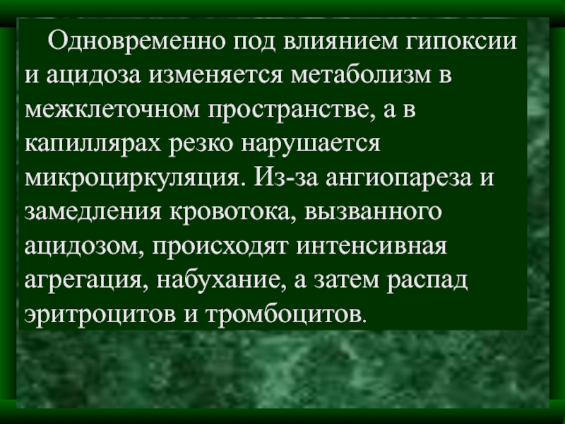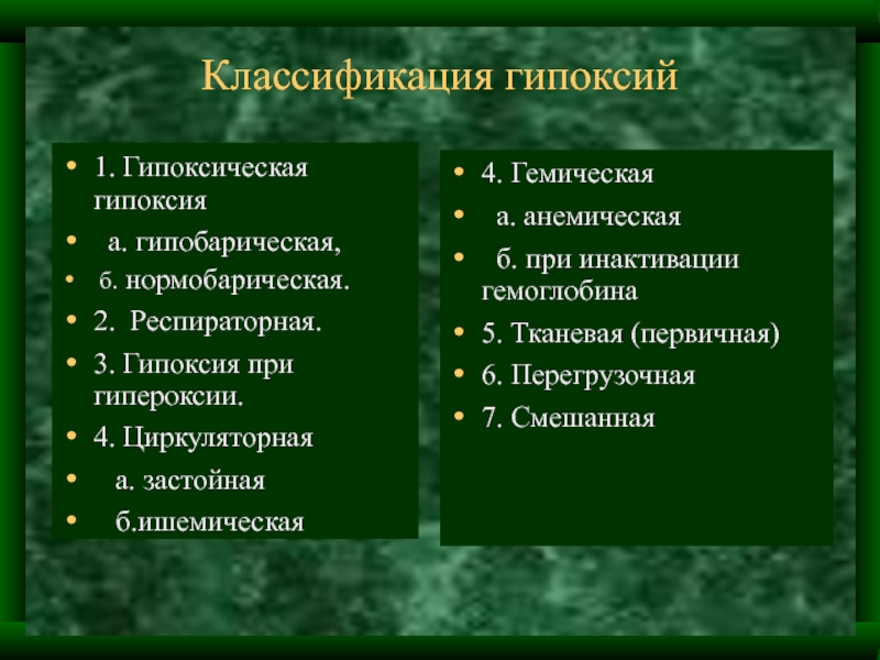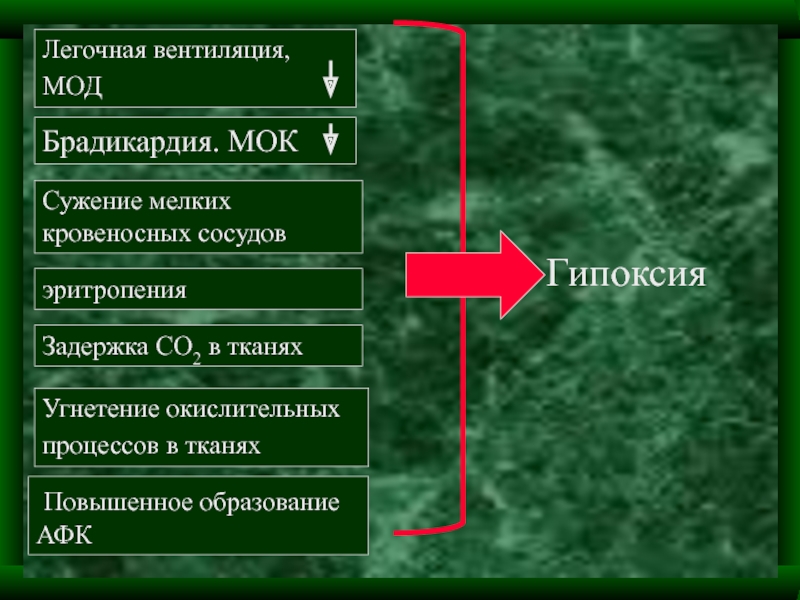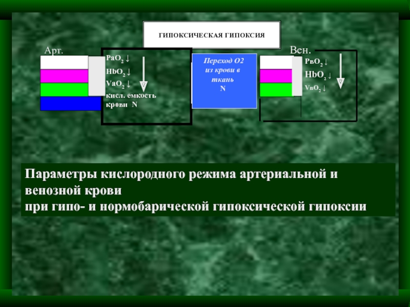кровью или его поступления из крови в клетки тканей приводит к развитию кислородного голодания и замедлению обменных процессов.