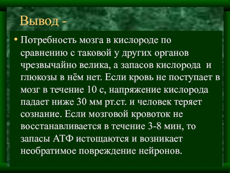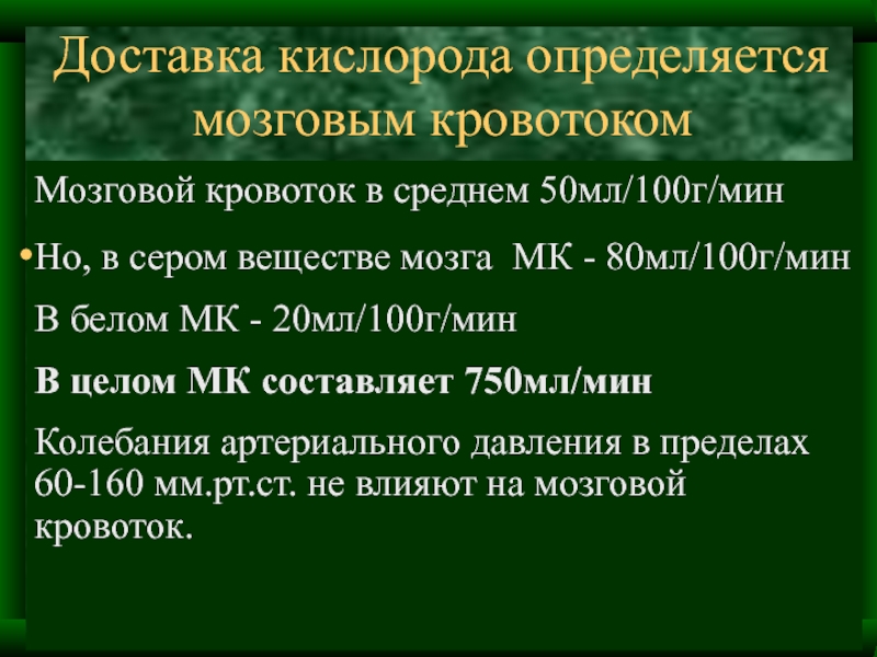 большинстве тканей кислород не депонируется. Поэтому любое ограничение доставки кислорода