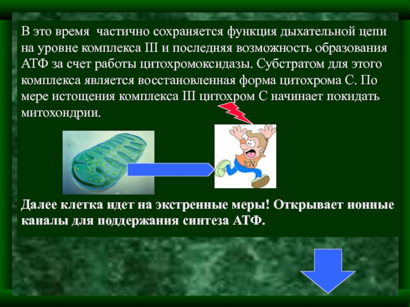Слайд 80В это время частично сохраняется функция дыхательной цепи на уровне