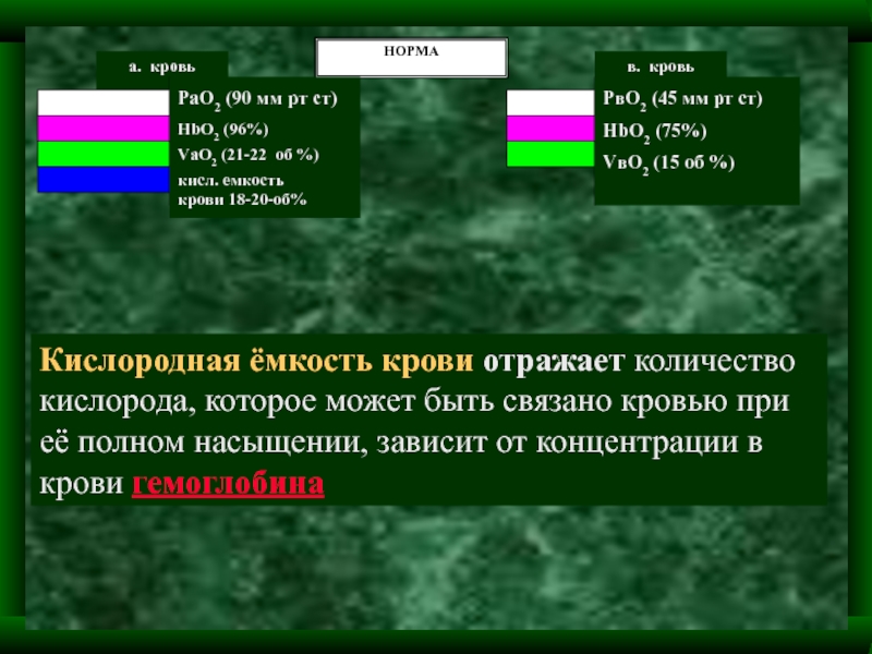Слайд 7Кислородная ёмкость крови отражает количество кислорода, которое может быть связано