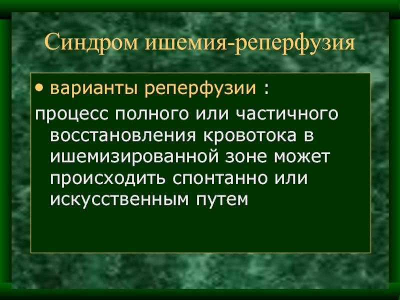 вызывает ряд процессов, объединенных в термин «реперфузионное повреждение», которые негативно