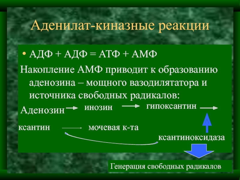 к образованию аденозина – мощного вазодилятатора и источника свободных радикалов: