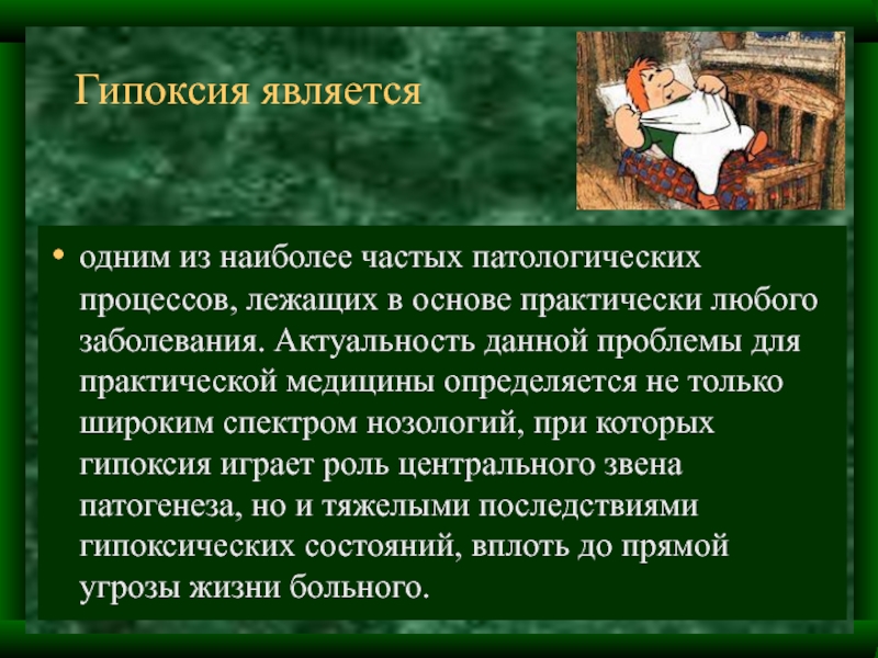 не только широким спектром нозологий, при которых гипоксия играет роль центрального звена патогенеза, но и тяжелыми последствиями гипоксических состояний, вплоть до прямой угрозы жизни больного.