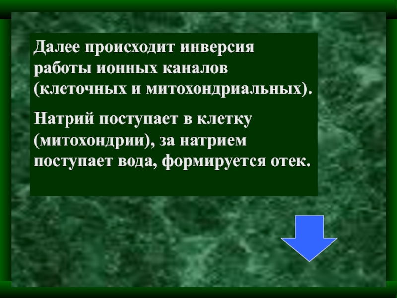 Слайд 81Далее происходит инверсия работы ионных каналов (клеточных и митохондриальных).