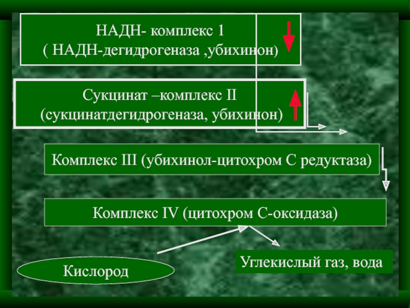 цитохромоксидазы. Субстратом для этого комплекса является восстановленная форма цитохрома С. По мере истощения комплекса III цитохром С начинает покидать митохондрии.