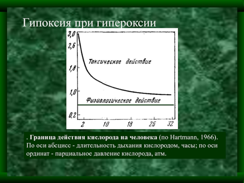 По оси абсцисс - длительность дыхания кислородом, часы; по