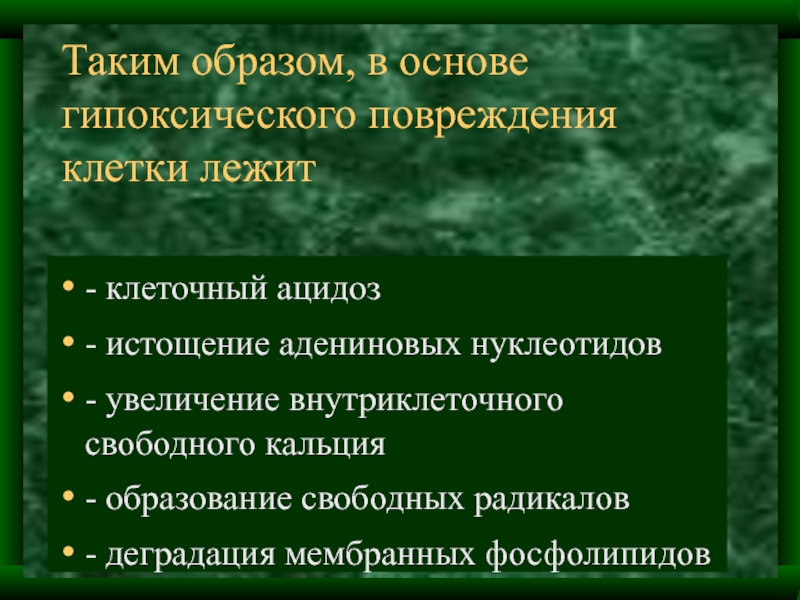 Слайд 83Таким образом, в основе гипоксического повреждения клетки лежит