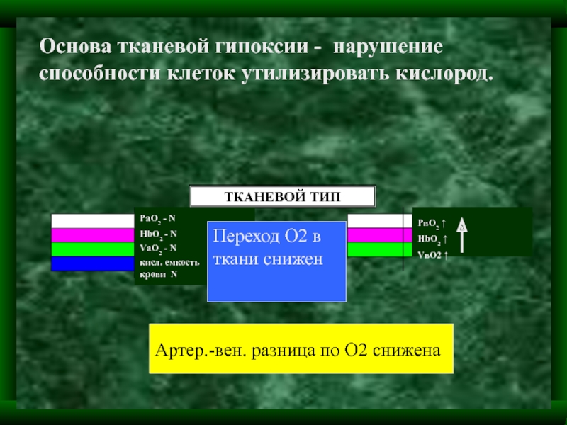 Слайд 13Основа тканевой гипоксии - нарушение способности клеток утилизировать кислород.