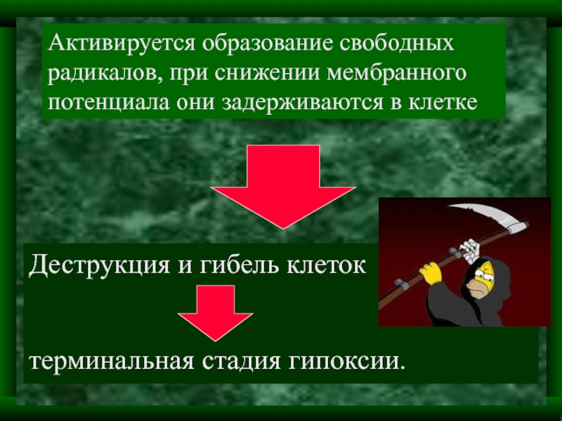 Слайд 82Активируется образование свободных радикалов, при снижении мембранного потенциала они задерживаются
